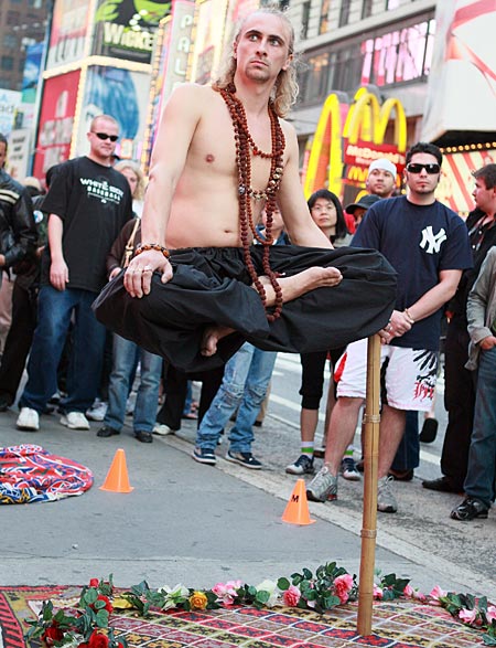 以下图集是 荷兰著名魔术师拉玛纳(Ramana)正在拉斐特公园现场表演他的拿手绝活——“空中悬浮”: