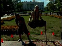 荷兰魔术师在白宫前表演空中悬浮特技(图)