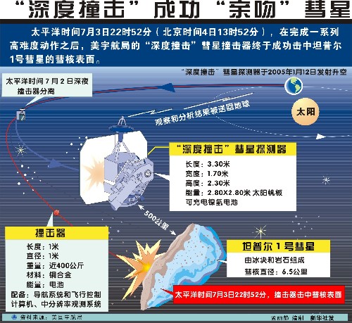 “深度撞击”成功“亲吻”彗星 新华社发 天流导航:尖子网/港湾/物理/天文资料 |